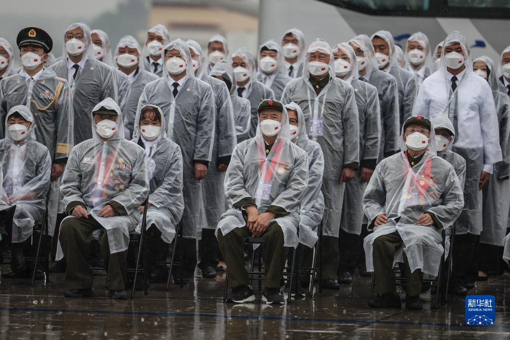 9月16日,志愿軍老戰士(前排)在沈陽桃仙國際機場參加儀式。