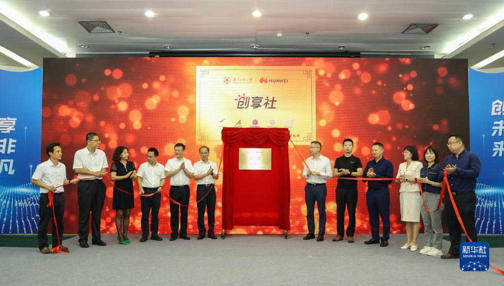 廣東工業(yè)大學(xué)與華為技術(shù)有限公司合作的鯤鵬、昇騰開發(fā)者創(chuàng)享社揭牌(9月16日攝)。