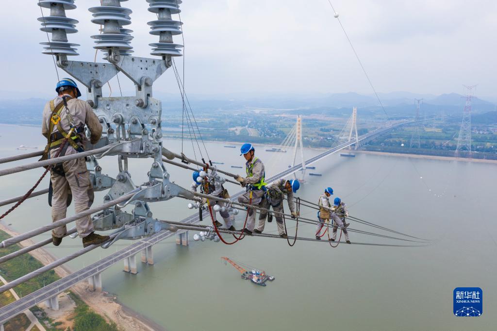 新華全媒+丨“西電東送”大動脈 特高壓白浙線安徽段長江大跨越線路貫通