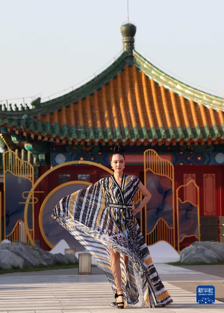 9月16日,模特在2022北京時裝周“劉薇非遺作品大賞”時裝秀上展示知名時裝設計師劉薇設計的時裝。