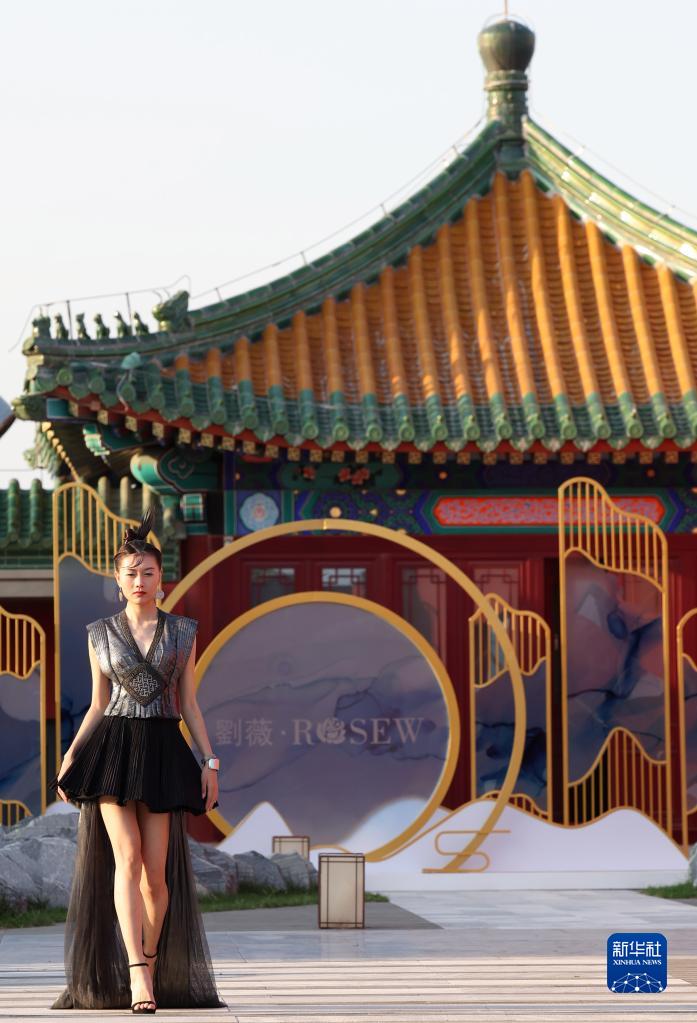 9月16日,模特在2022北京時裝周“劉薇非遺作品大賞”時裝秀上展示知名時裝設計師劉薇設計的時裝。