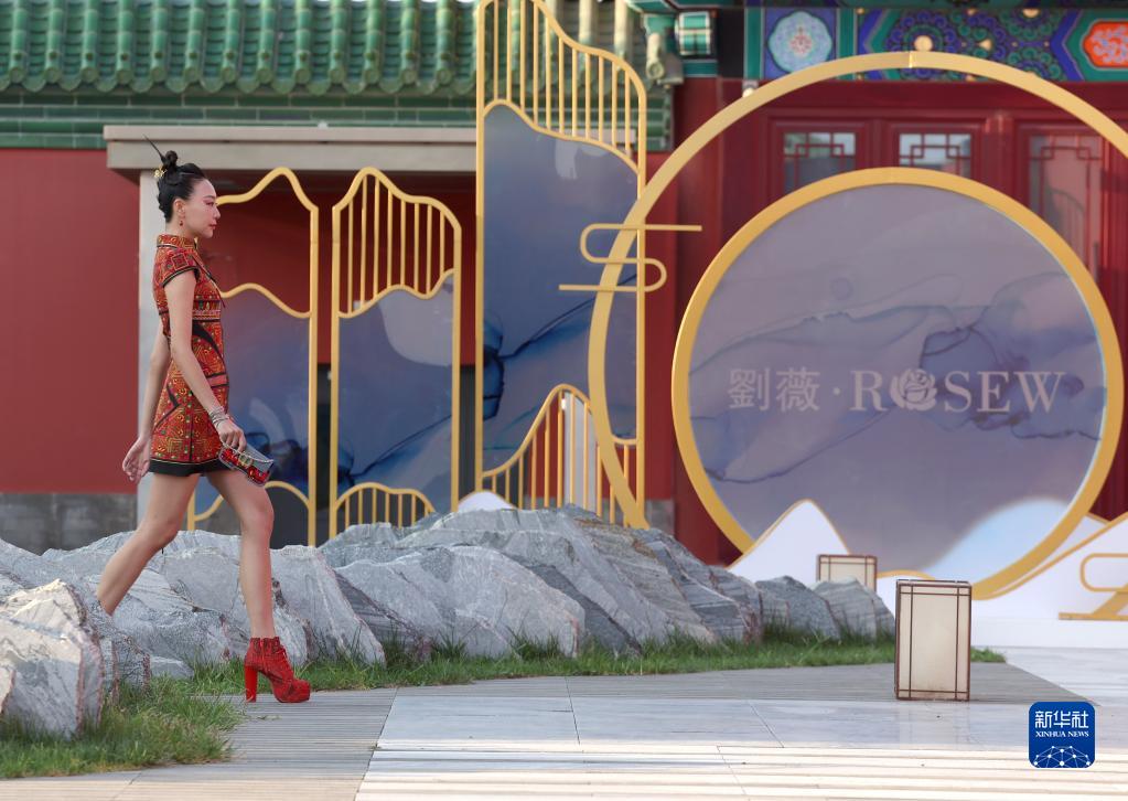 9月16日,模特在2022北京時裝周“劉薇非遺作品大賞”時裝秀上展示知名時裝設計師劉薇設計的時裝。