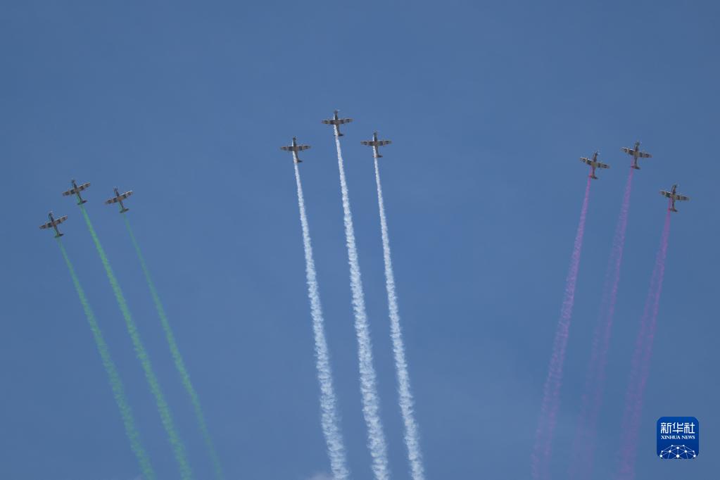 9月16日,在墨西哥首都墨西哥城,飛機編隊在閱兵式上表演。