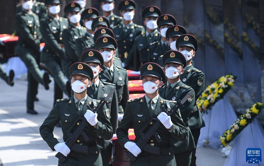 9月17日,禮兵護送志愿軍烈士遺骸棺槨進入沈陽抗美援朝烈士陵園安葬地宮。