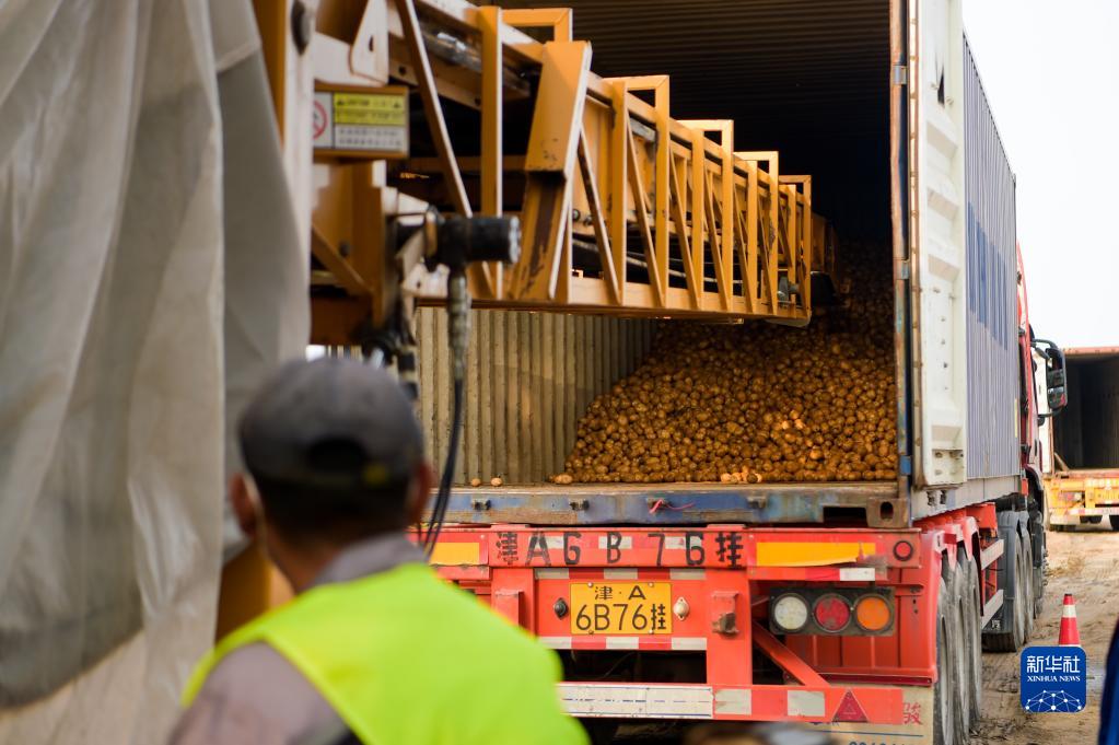 近日,位于庫布其沙漠腹地的內蒙古自治區鄂爾多斯市杭錦旗阿木古龍健康產業園內的土豆迎來豐收季,工人們篩選、裝運土豆,一派繁忙景象。近年來,杭錦旗通過技術改良提高沙地利用價值,開展土豆等農作物種植,促進當地農業發展。