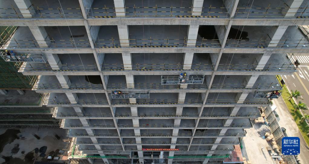 9月17日,工人在復興城國際數字港項目工地施工(無人機照片)。
