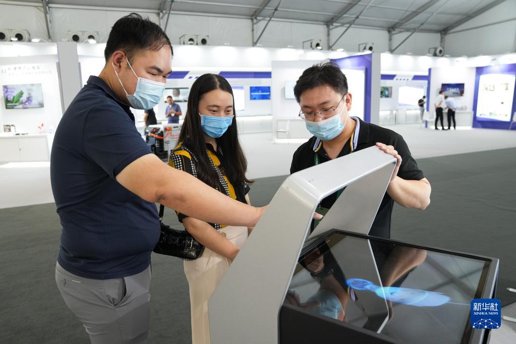 9月17日,在2022年全國大眾創業萬眾創新活動周合肥主會場的主題展區,參觀者體驗無介質全息成像技術應用。