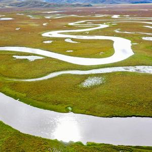 秋日里,位于甘肅省甘南藏族自治州瑪曲縣的阿萬(wàn)倉(cāng)濕地風(fēng)景如畫(huà)。