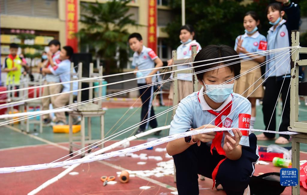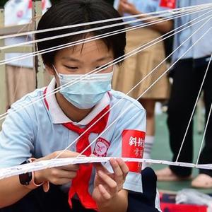 9月17日,學生在河南洛陽市澗西區第二屆中小學科創節上參加“牙簽建橋”科技項目。