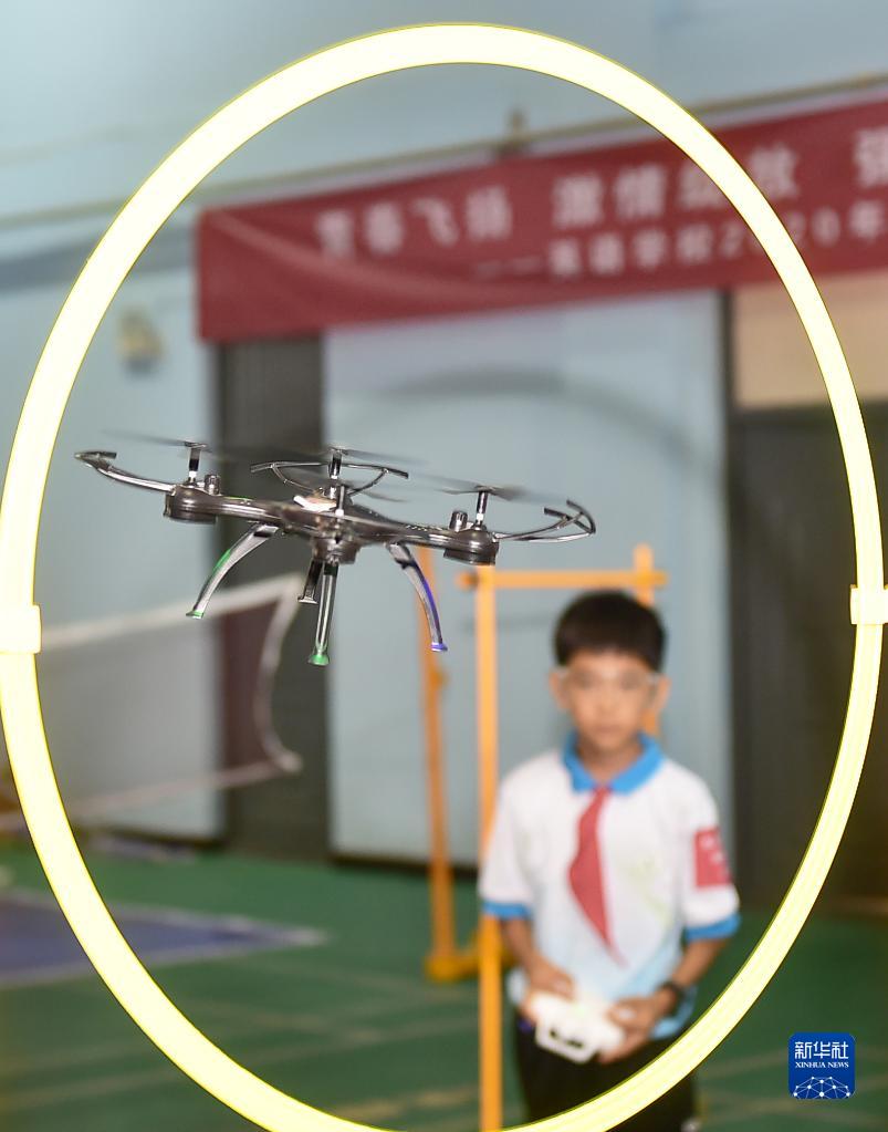 9月17日,學生在河南洛陽市澗西區(qū)第二屆中小學科創(chuàng)節(jié)上參加“回旋飛行”項目。