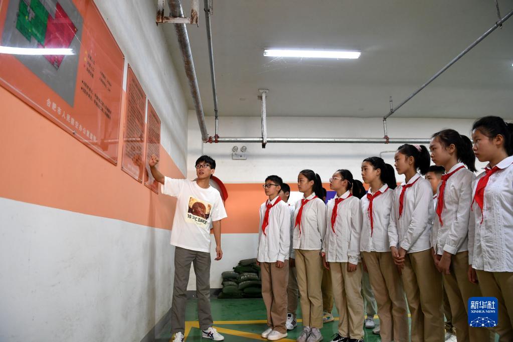 9月18日,合肥市朝霞小學的學生在校園人防工程內學習人防知識。