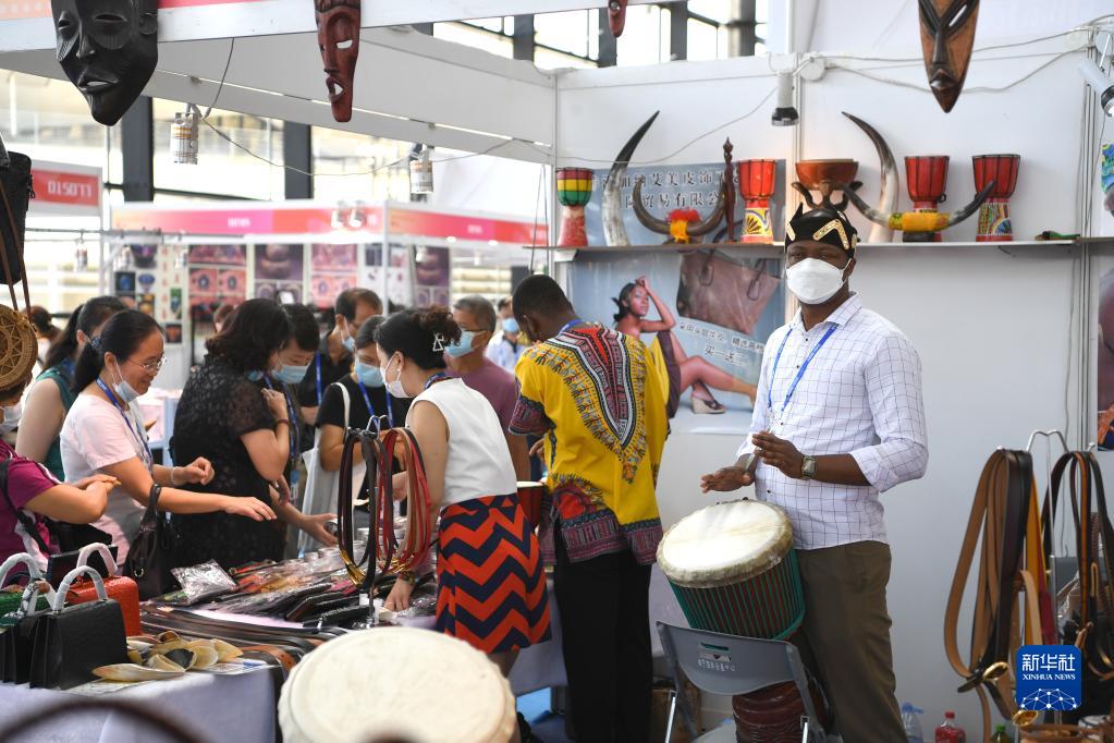 9月18日,一名加納客商在東博會(huì)“一帶一路”國(guó)際展區(qū)敲鼓招徠觀眾。