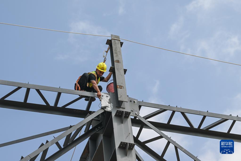 9月17日,工人在位于海南文昌的衛(wèi)星總裝測試廠房項目工地施工。