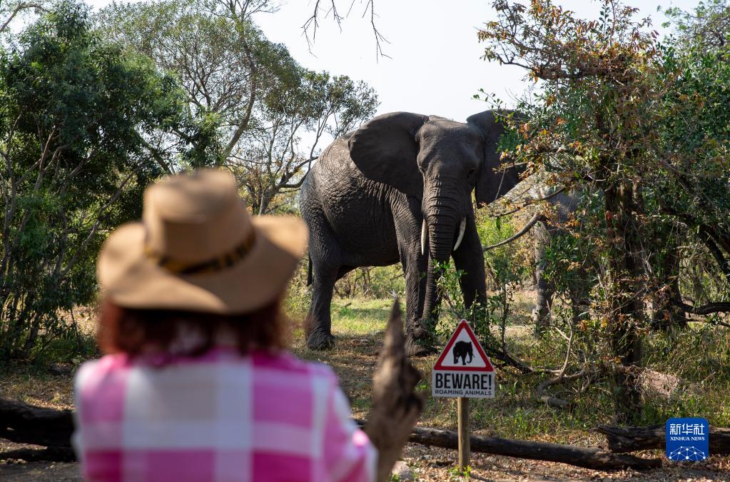 9月17日,在南非克魯格國家公園,大象走近一處游客休息點。