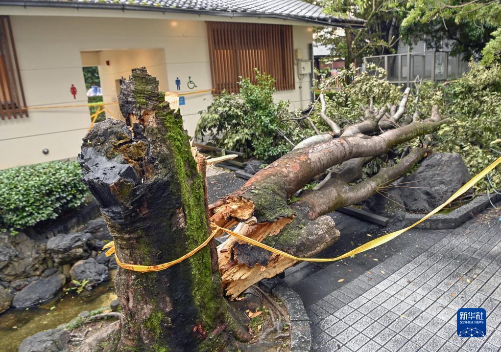 這是9月19日在日本高知縣拍攝的被強風折斷的樹木。