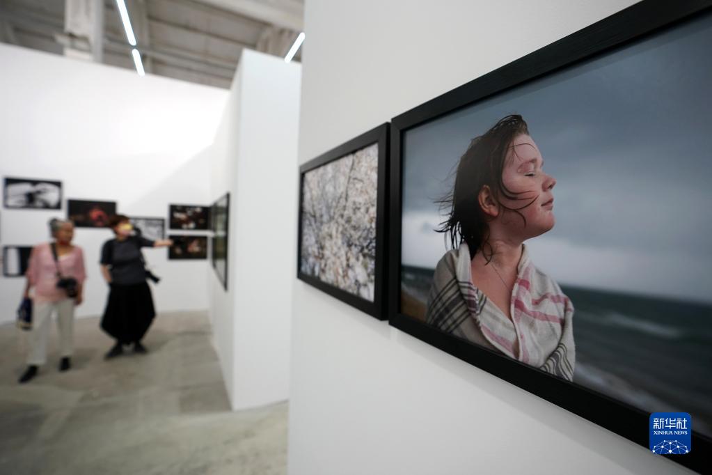 9月19日,參觀者在第22屆平遙國際攝影大展上觀看展出作品。