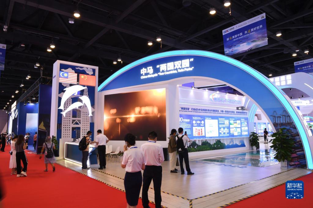 9月19日,觀眾在東博會中馬“兩國雙園”展區(qū)參觀。