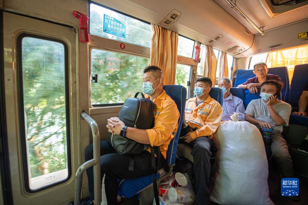 9月19日,看守員趙偉燈(左一)與蔡金礦(左二)乘坐鄉村公交車前往赤嶺隧道。