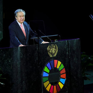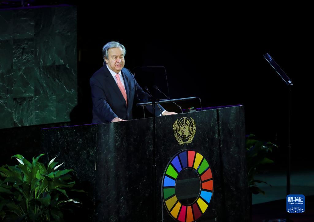 9月19日,在位于紐約的聯合國總部,聯合國秘書長古特雷斯在第三次“可持續發展目標時刻”高級別活動上致辭。