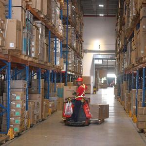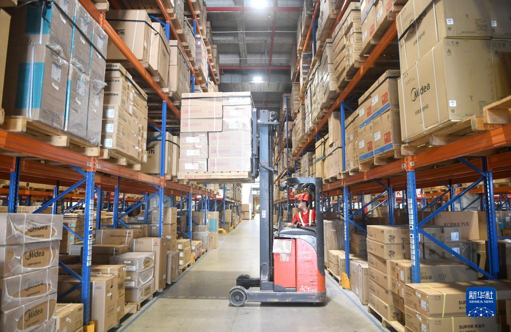 工作人員在位于廣州市開(kāi)發(fā)區(qū)的京東倉(cāng)庫(kù)里搬運(yùn)快遞包裹(9月15日攝)。