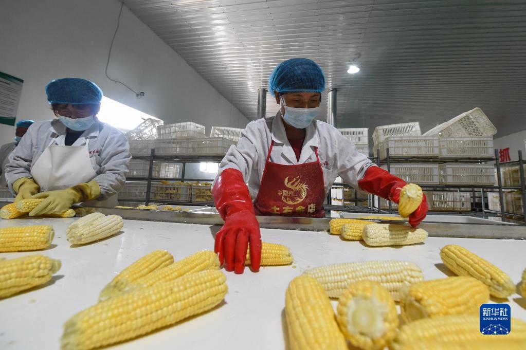 9月20日,在準格爾旗一家食品加工廠內,工人在分揀玉米。