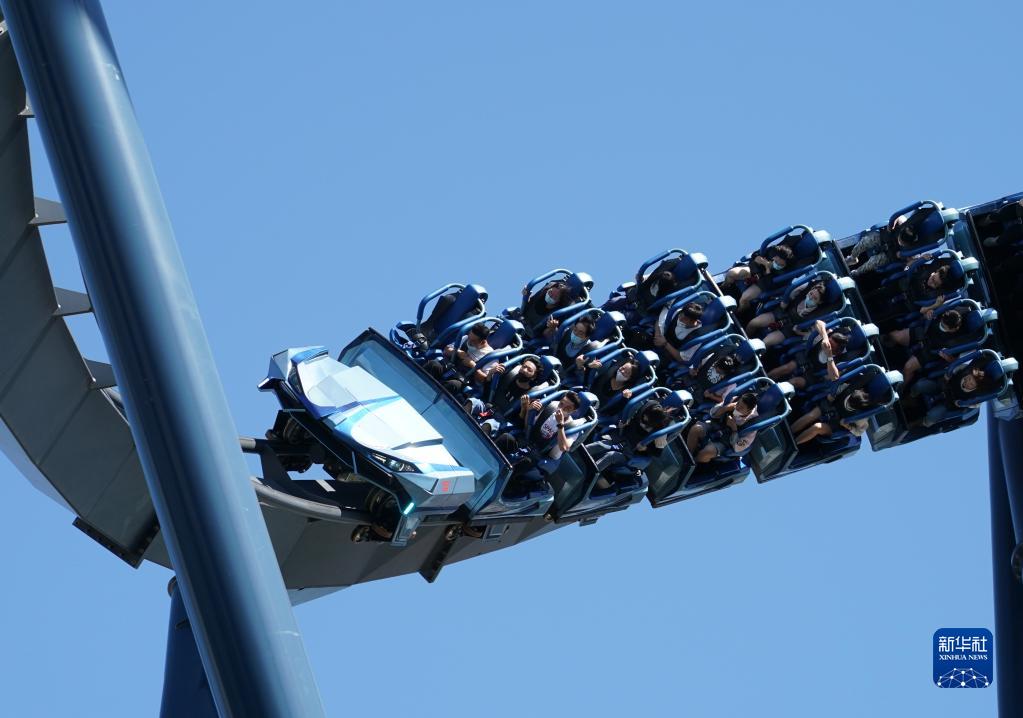 9月20日,游客在北京環球影城體驗“霸天虎過山車”。