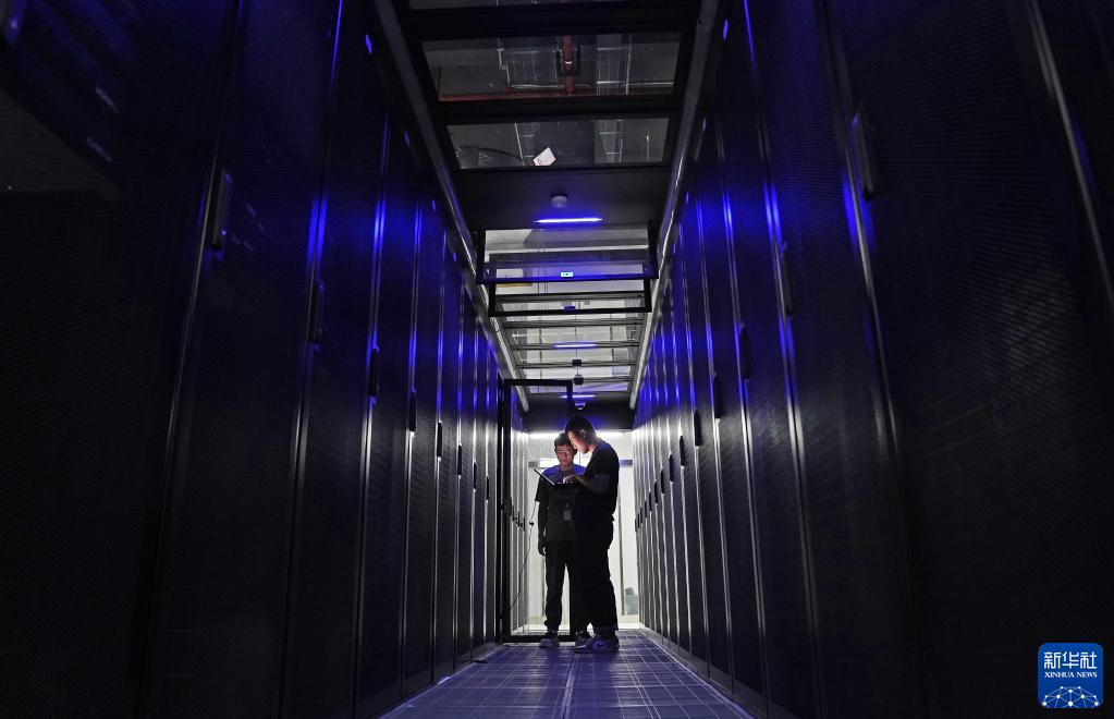 9月20日,在位于南昌經(jīng)濟技術(shù)開發(fā)區(qū)的中國聯(lián)通智·云數(shù)據(jù)中心,工作人員檢查服務(wù)器運行情況。