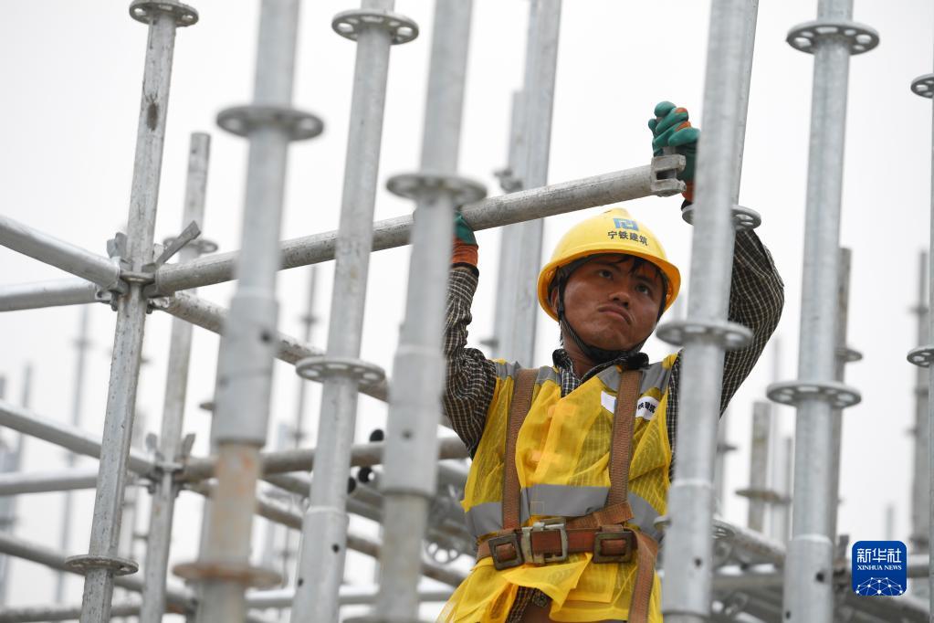 9月20日,工人在南寧國際鐵路港電商物流區施工。