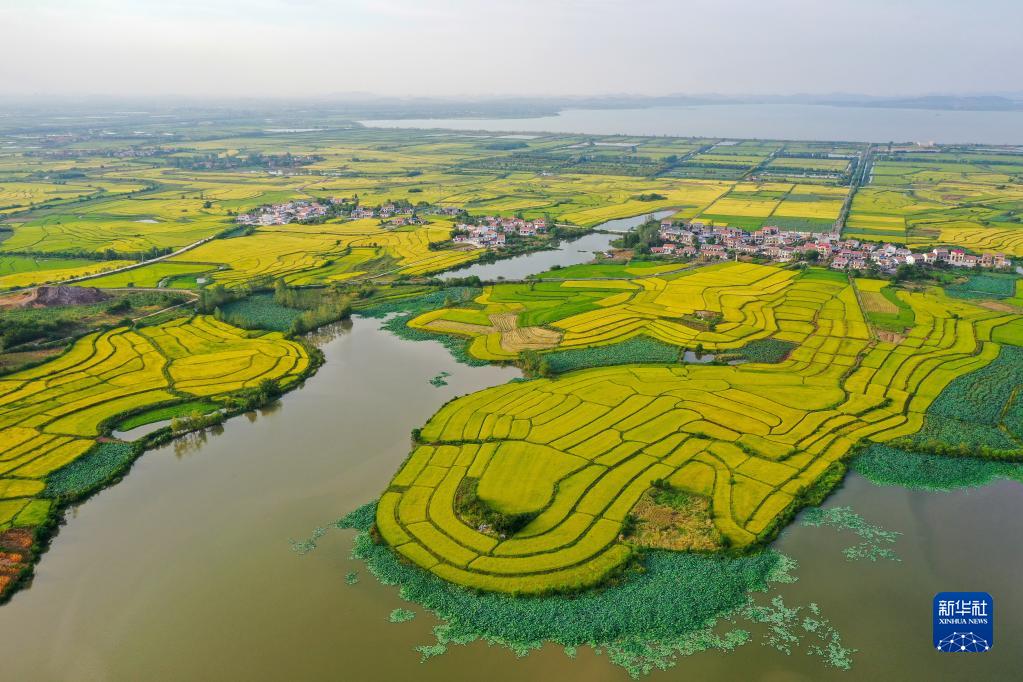 9月9日在湖北武漢江夏區(qū)法泗鎮(zhèn)拍攝的進入成熟期的稻田(無人機照片)。