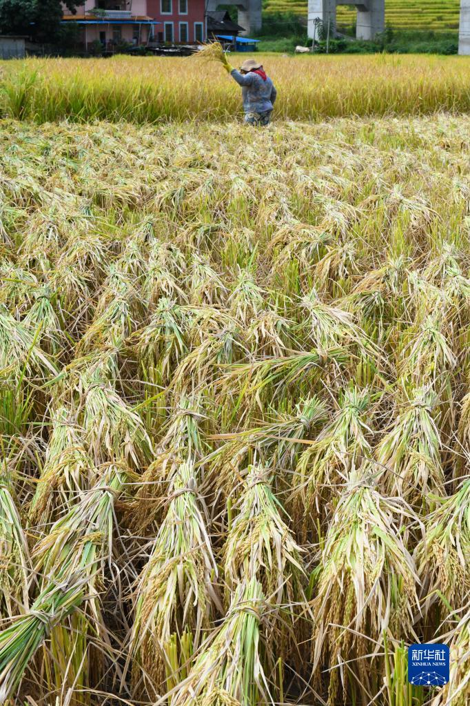 秋收時節,各地水稻陸續成熟,農民忙著開鐮收割,田間地頭稻谷飄香,一派喜人的豐收景象。