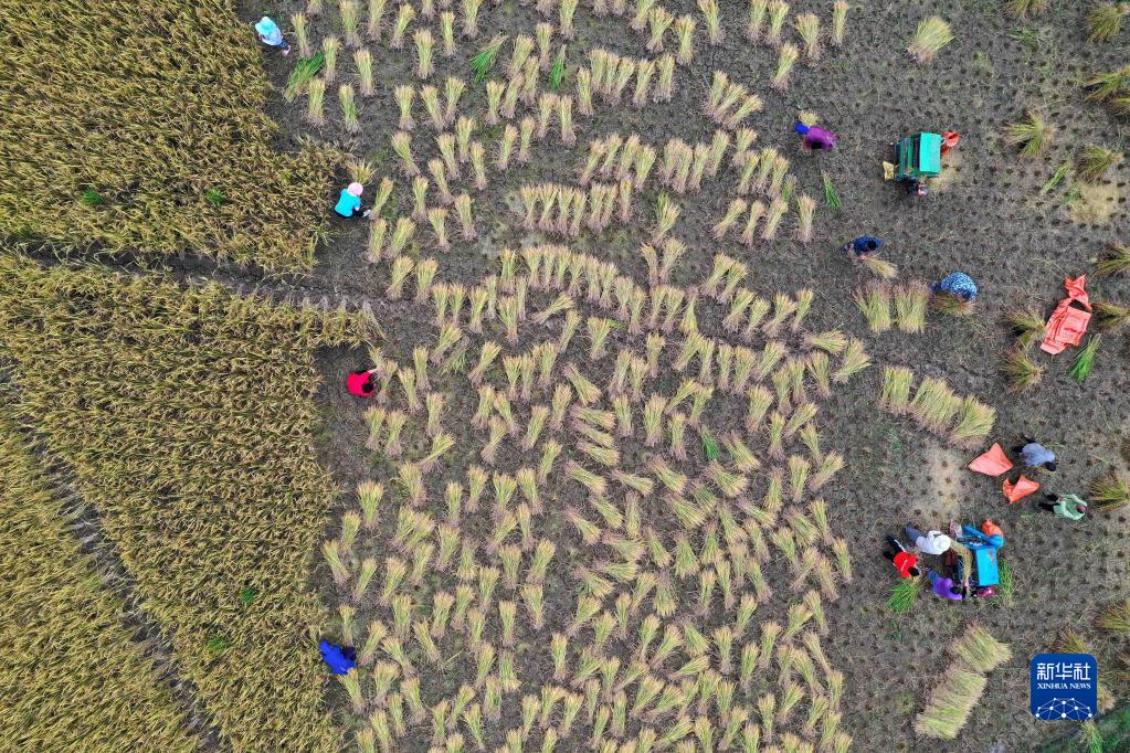 秋收時節,各地水稻陸續成熟,農民忙著開鐮收割,田間地頭稻谷飄香,一派喜人的豐收景象。