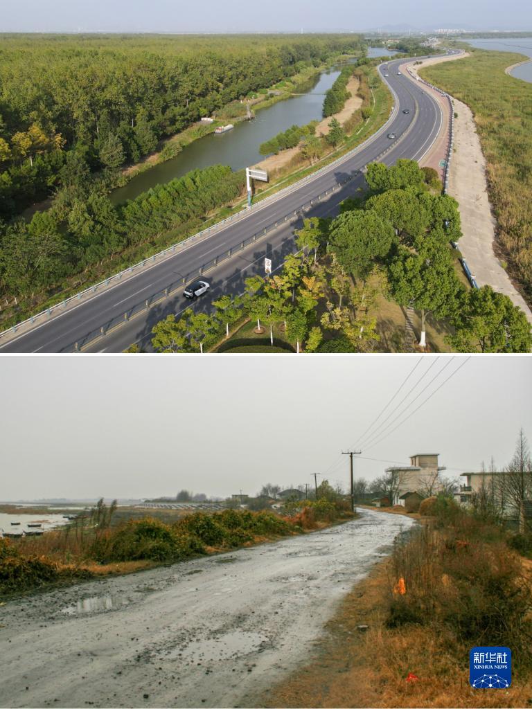 這是一張拼版照片:上圖為2022年9月6日拍攝的巢湖岸線景象(新華社記者張端攝);下圖為2007年拍攝的巢湖岸線景象(資料照片)。