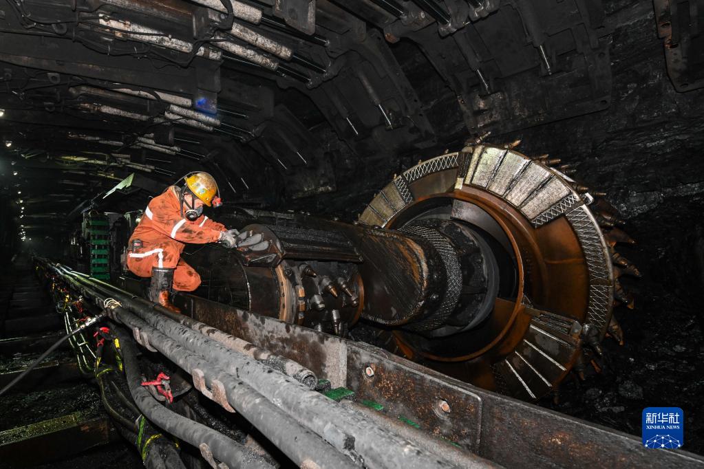 9月20日,在龍王溝煤礦礦井下,工人在檢修采煤機(jī)。