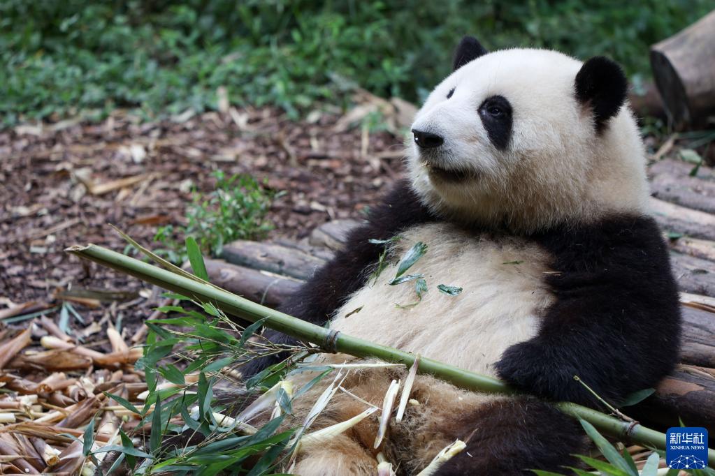 這是9月21日在成都大熊貓繁育研究基地內拍攝的大熊貓“和花”。