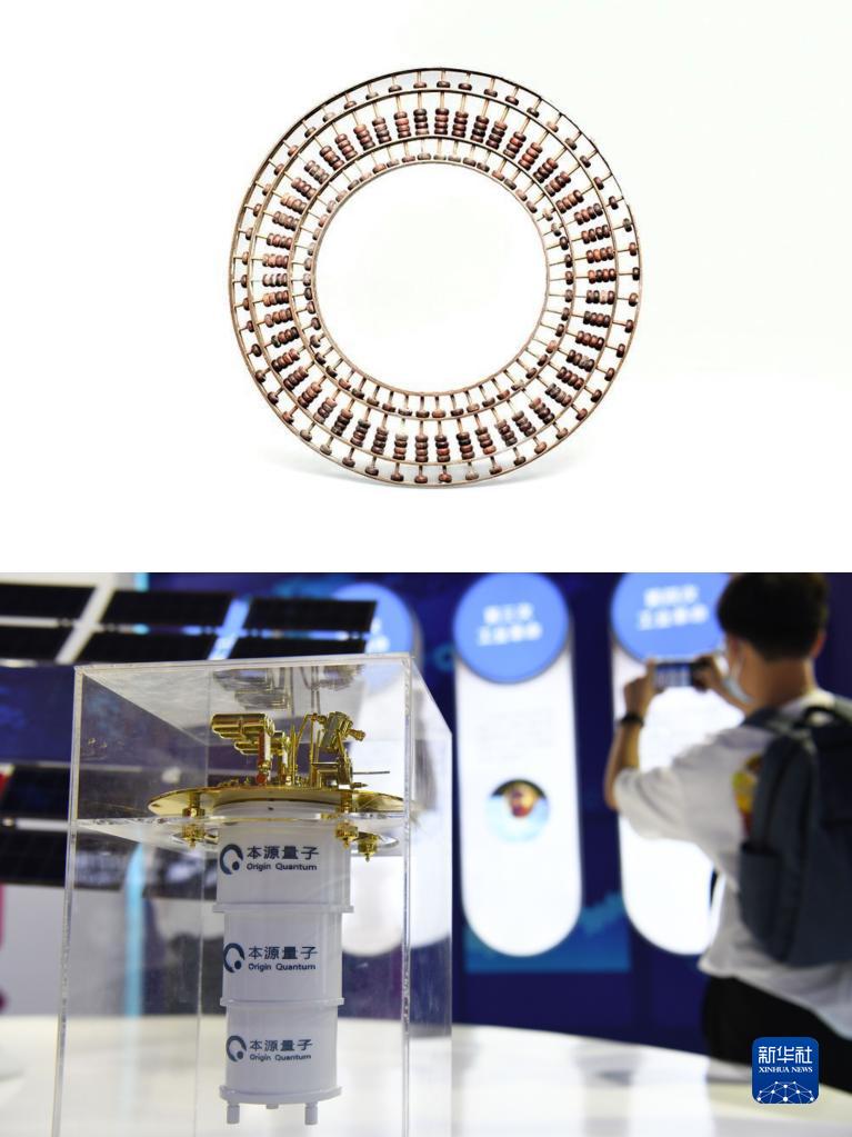 這是一張拼版照片:上圖為明代銅圓八卦算盤(安徽程大位珠算博物館供圖);下圖為在2022世界制造業(yè)大會(huì)上,合肥本源量子計(jì)算科技有限責(zé)任公司展出的24比特超導(dǎo)量子計(jì)算機(jī)模型(新華社記者周牧2022年9月20日攝)。