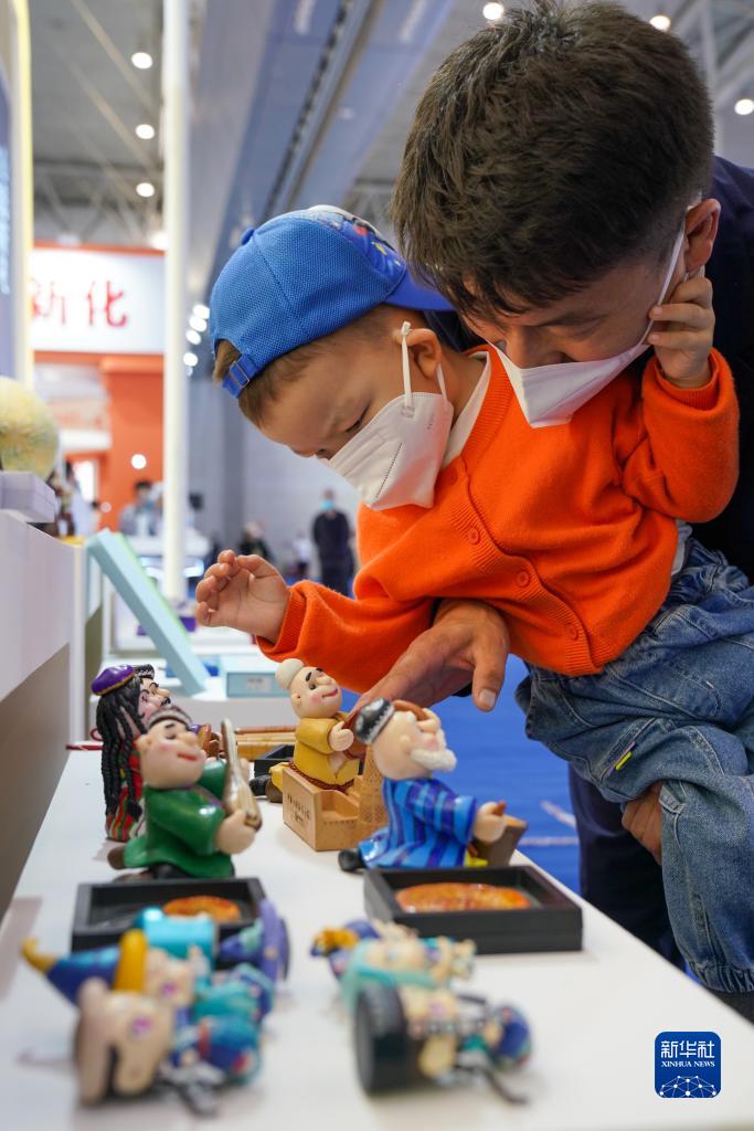 9月21日,在第七屆中國-亞歐博覽會上,參觀者在觀賞富有新疆特色的手工藝品。