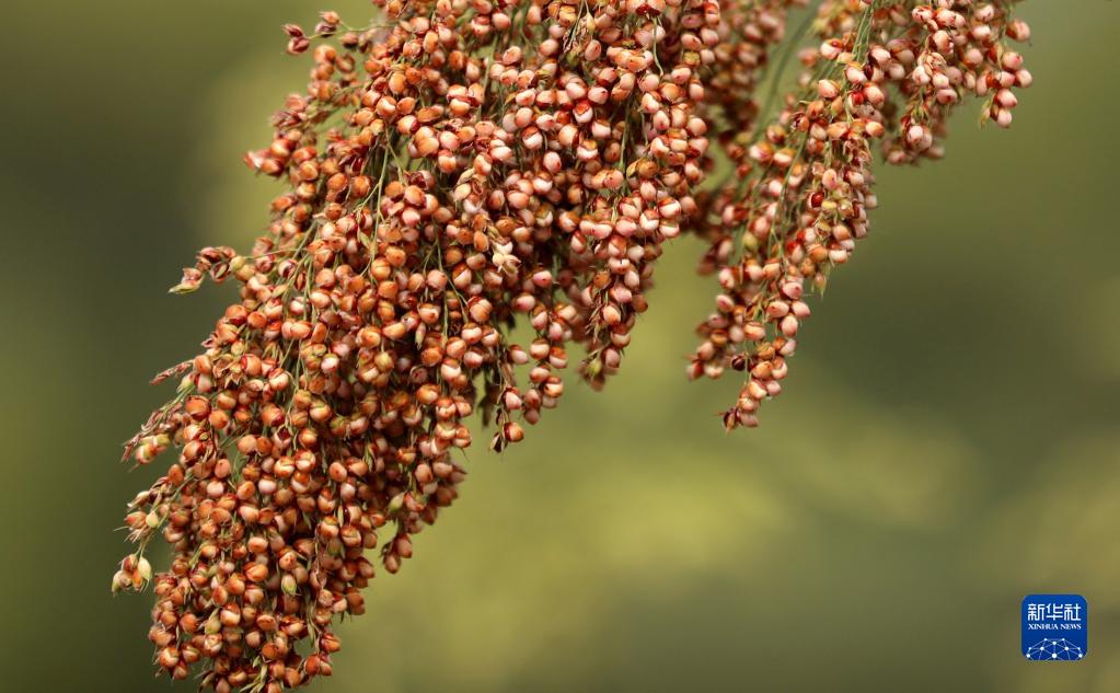 河北省滄州市新華區小趙莊鄉王希魯村,高粱“壓彎腰”(9月17日攝)。
