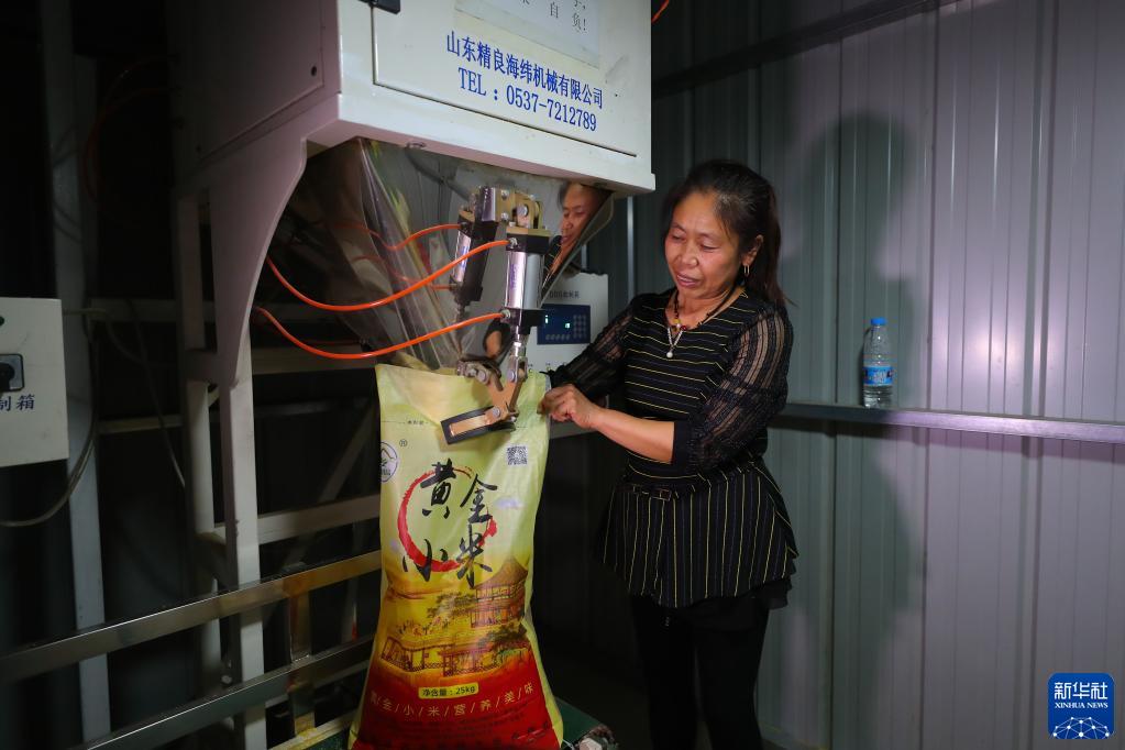 9月21日,在康平縣方家屯鎮(zhèn)東小陵村,農(nóng)民在灌裝小米。