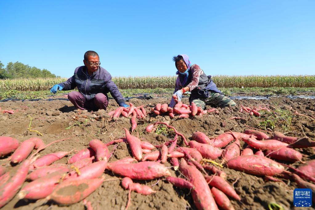 9月21日,在康平縣方家屯鎮(zhèn)十家子村,農(nóng)民在地里收獲紅薯。