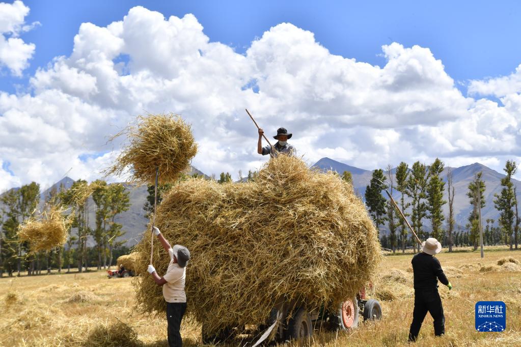 第五個中國農民豐收節在即,西藏自治區拉薩市林周縣的田間地頭一片繁忙。據了解,林周縣目前累計糧食收獲面積為12.43萬畝,已收獲秋糧總產量預估6萬噸,豐收在望。