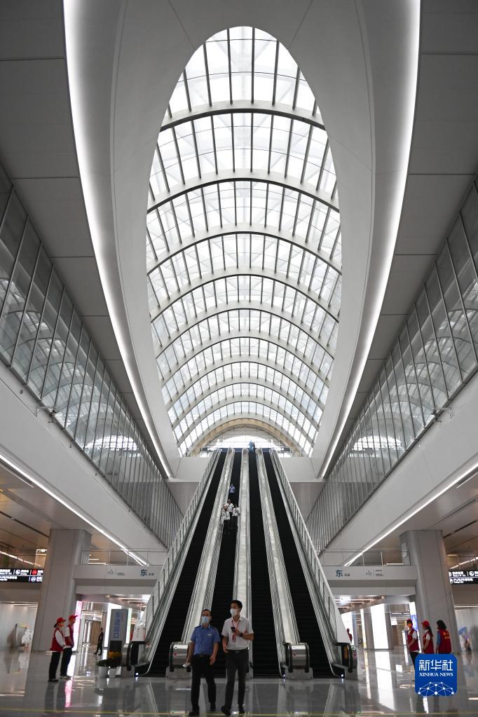 9月22日在杭州西站拍攝的扶梯。杭州西站站房中,8部長約50米的扶梯,最大提升高度超過24米,讓旅客從地鐵、公交等公共交通層直達候車大廳。
