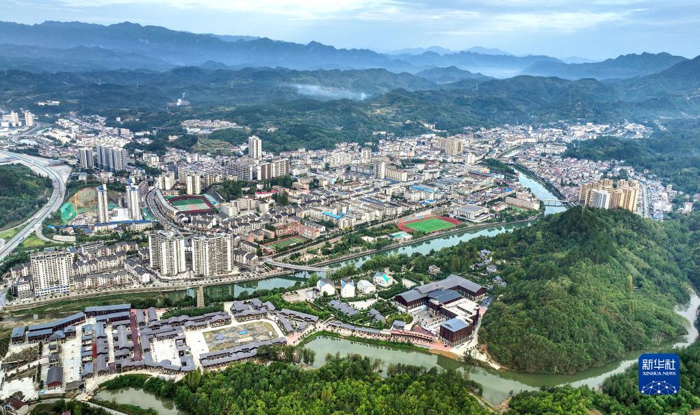 這是綠色環抱的陜西漢中寧強縣城(9月6日攝,無人機照片)。