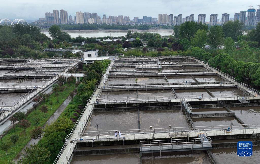 陜西漢中市城市污水處理廠員工在取樣檢測(cè)污水指標(biāo)(9月20日攝,無(wú)人機(jī)照片)。目前,漢中市中心城區(qū)和10個(gè)縣城污水處理廠、垃圾衛(wèi)生填埋場(chǎng)已全部建成投運(yùn)。