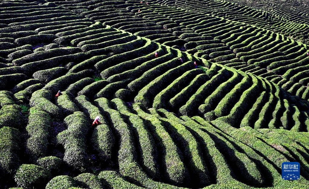 村民在陜西漢中市勉縣漆樹壩鎮巴山萬峰萬畝茶園采摘新茶(4月19日攝)。漢中市堅持“綠色循環·漢風古韻”戰略定位,全市茶葉面積達到132.3萬畝。