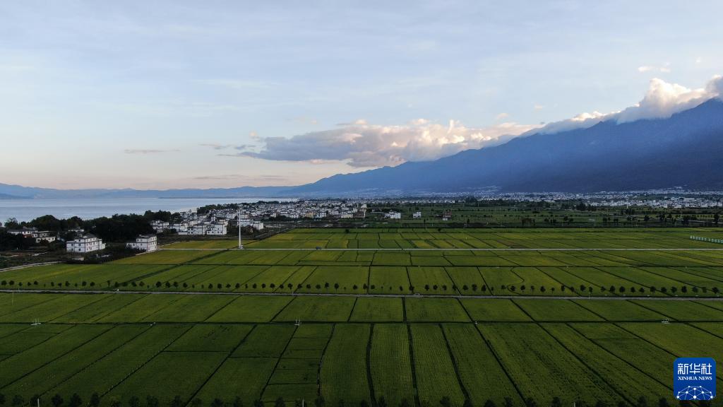 俯瞰云南大理洱海畔連片的稻田(9月21日攝,無(wú)人機(jī)照片)。