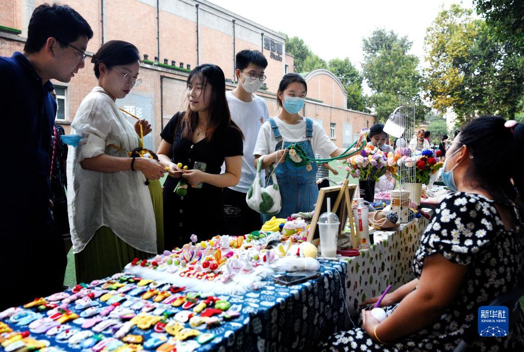市民在西影“電影圈子”的集市上進行選購(9月11日攝)。