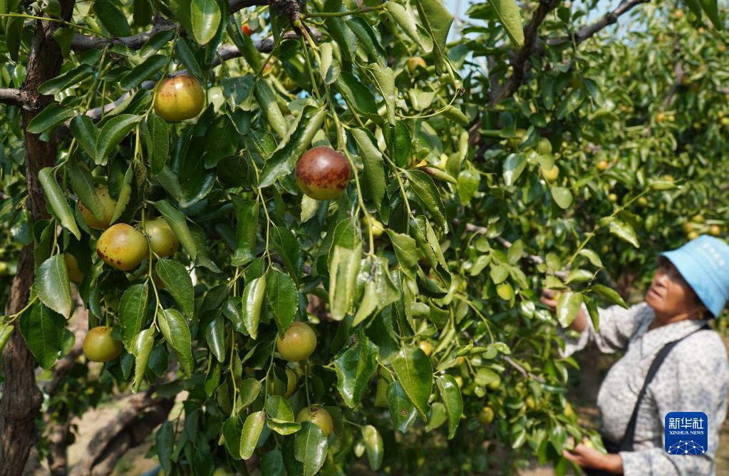 秋分前后,山東省濱州市沾化區大棚冬棗種植園內的冬棗開始大面積進入成熟期,棗農們忙著采摘成熟的冬棗,喜迎豐收。近年來,當地采取“黨支部+合作社+農戶”的方式,積極推廣大棚冬棗,帶動棗農抱團發展、實現增收致富,目前全區大棚冬棗種植面積達到5萬余畝。