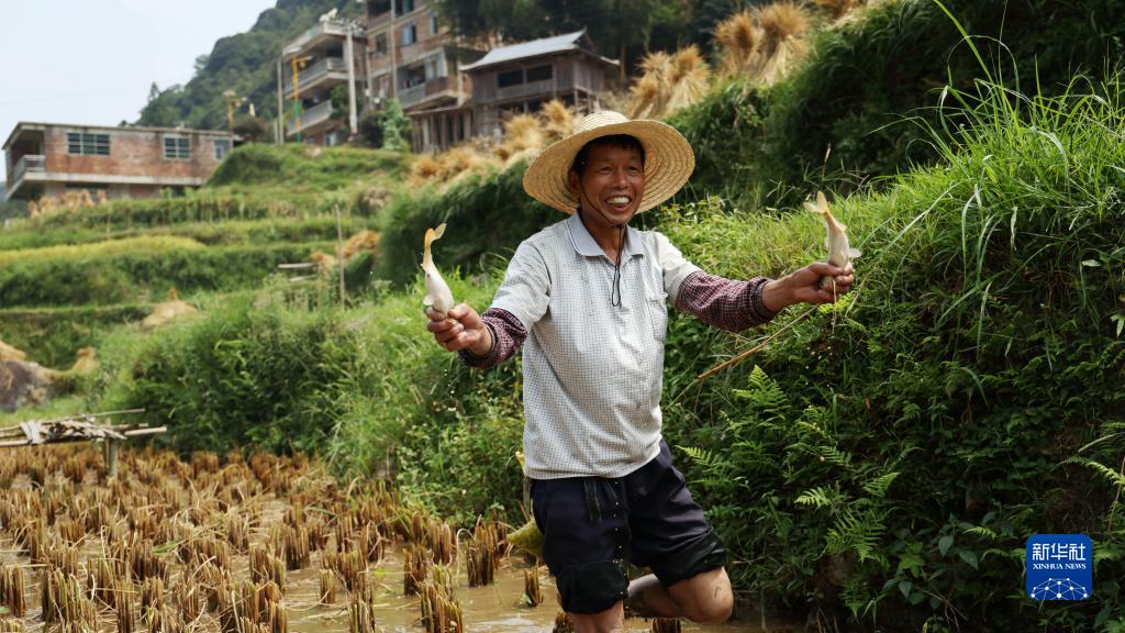 當(dāng)下,廣西融水苗族自治縣上萬(wàn)畝稻魚(yú)綜合養(yǎng)殖生產(chǎn)基地迎來(lái)收獲季,苗族群眾緊抓時(shí)令忙秋收。