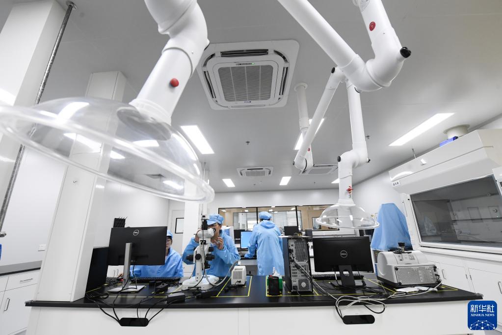 9月22日,在位于安吉縣的浙江潔美電子信息材料研究院,科研人員對搭載芯片的載帶做成分分析。