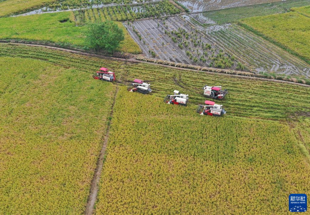 時值秋收,農業大省四川省各地農田里一片繁忙的收割景象。